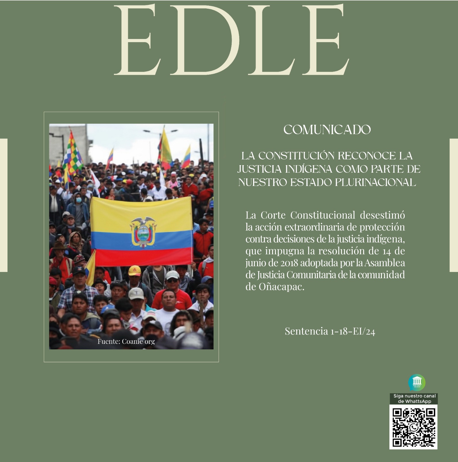 La Corte Constitucional desestimó la acción extraordinaria de protección contra decisiones de la justicia indígena, que impugna la resolución de 14 de junio de 2018 adoptada por la Asamblea de Justicia Comunitaria de la comunidad de Oñacapac.