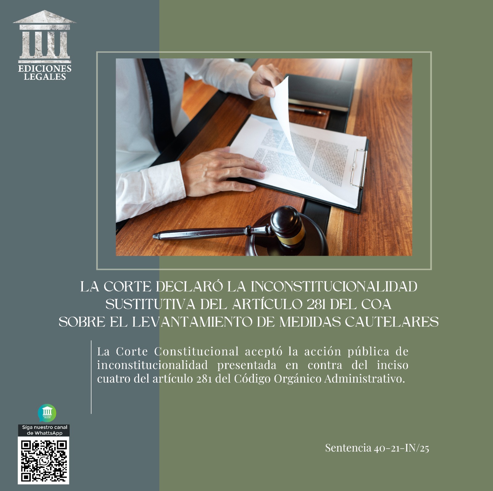 LA CORTE DECLARÓ LA INCONSTITUCIONALIDAD SUSTITUTIVA DEL ARTÍCULO 281 DEL COA SOBRE EL LEVANTAMIENTO DE MEDIDAS CAUTELARES.