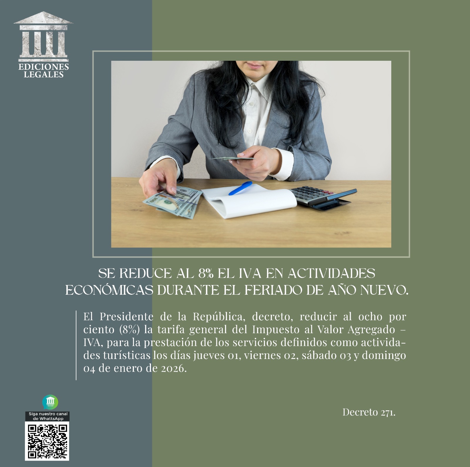 SE REDUCE AL 8% EL IVA EN ACTIVIDADES ECONÓMICAS DURANTE EL FERIADO DE AÑO NUEVO.