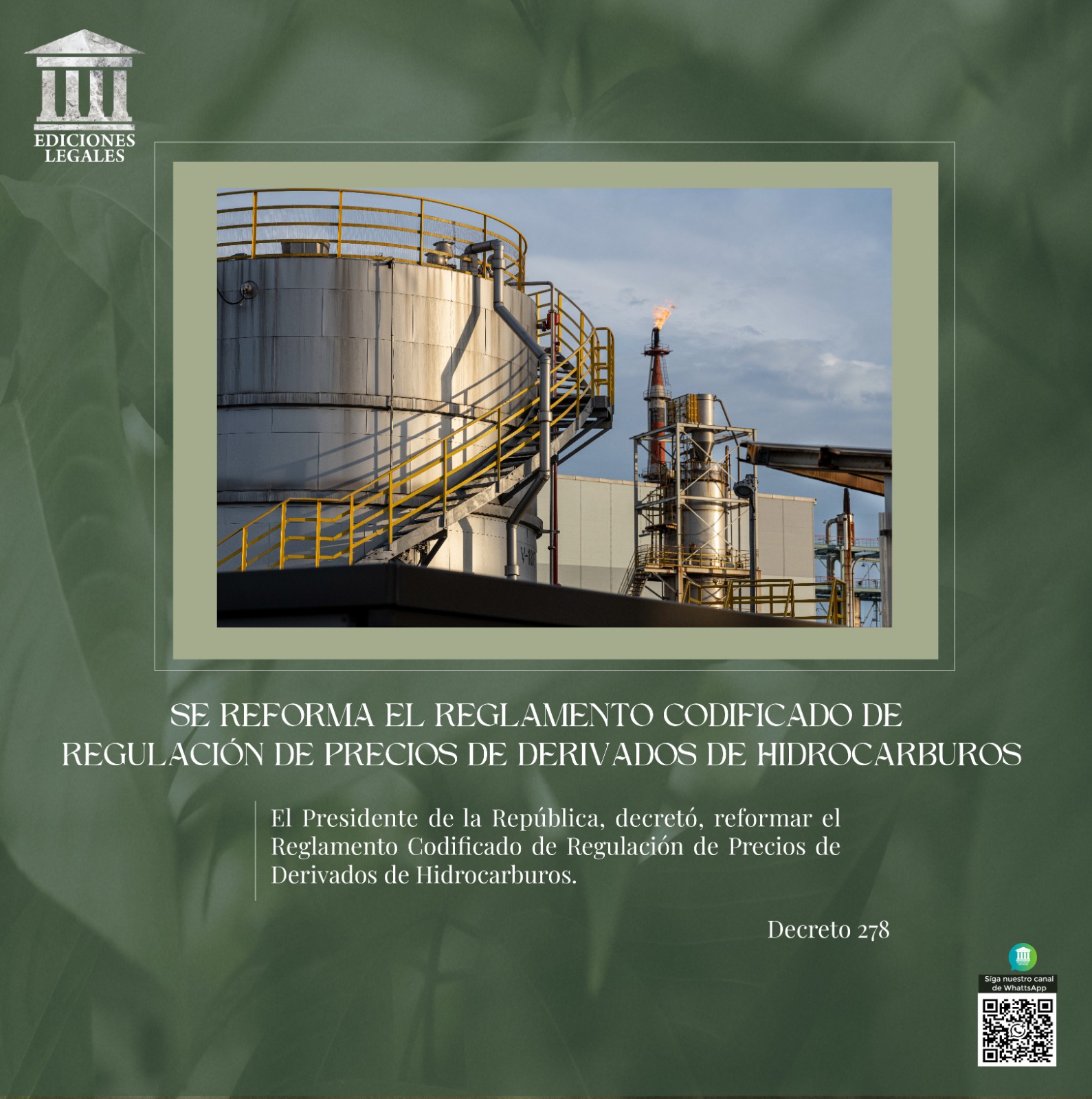 El Presidente de la República, decretó, reformar el Reglamento Codificado de Regulación de Precios de Derivados de Hidrocarburos.
