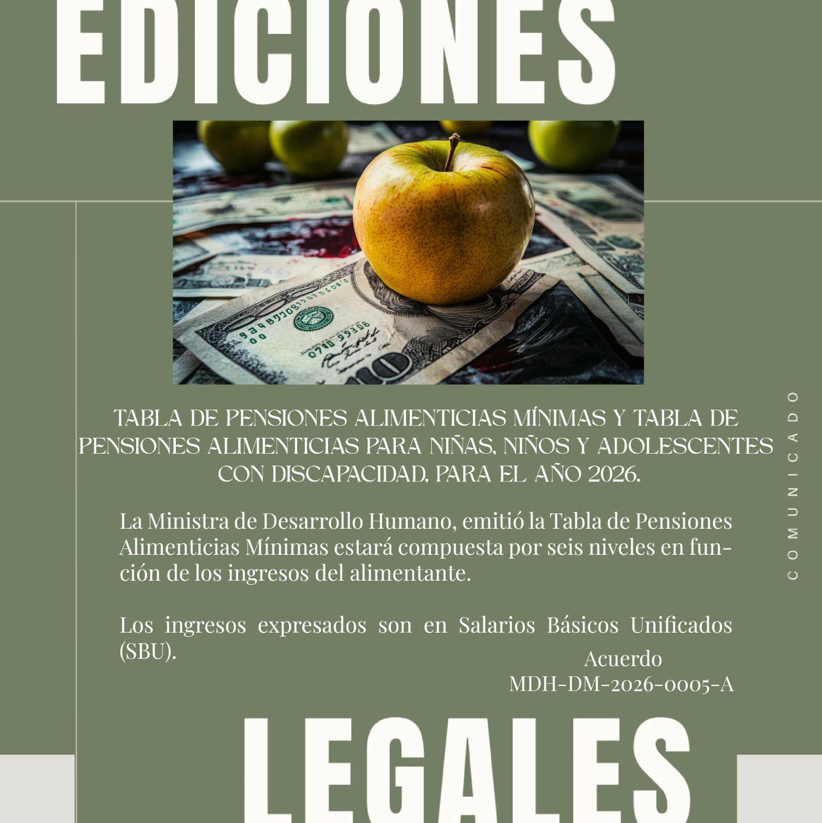 TABLA DE PENSIONES ALIMENTICIAS MÍNIMAS Y TABLA DE PENSIONES ALIMENTICIAS PARA NIÑAS, NIÑOS Y ADOLESCENTES CON DISCAPACIDAD, PARA EL AÑO 2026.