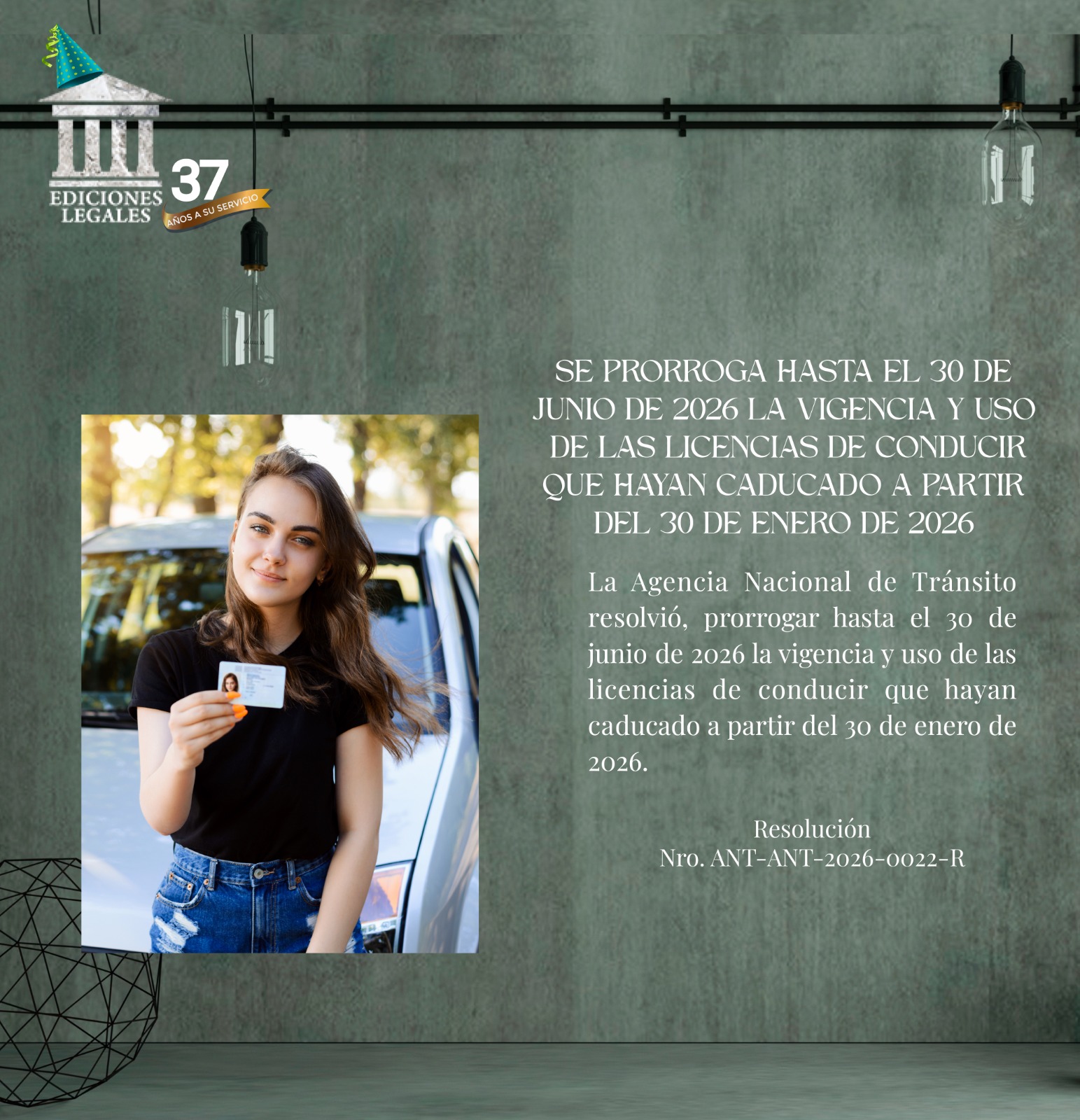 SE PRORROGA HASTA EL 30 DE JUNIO DE 2026 LA VIGENCIA Y USO DE LAS LICENCIAS DE CONDUCIR QUE HAYAN CADUCADO A PARTIR DEL 30 DE ENERO DE 2026.