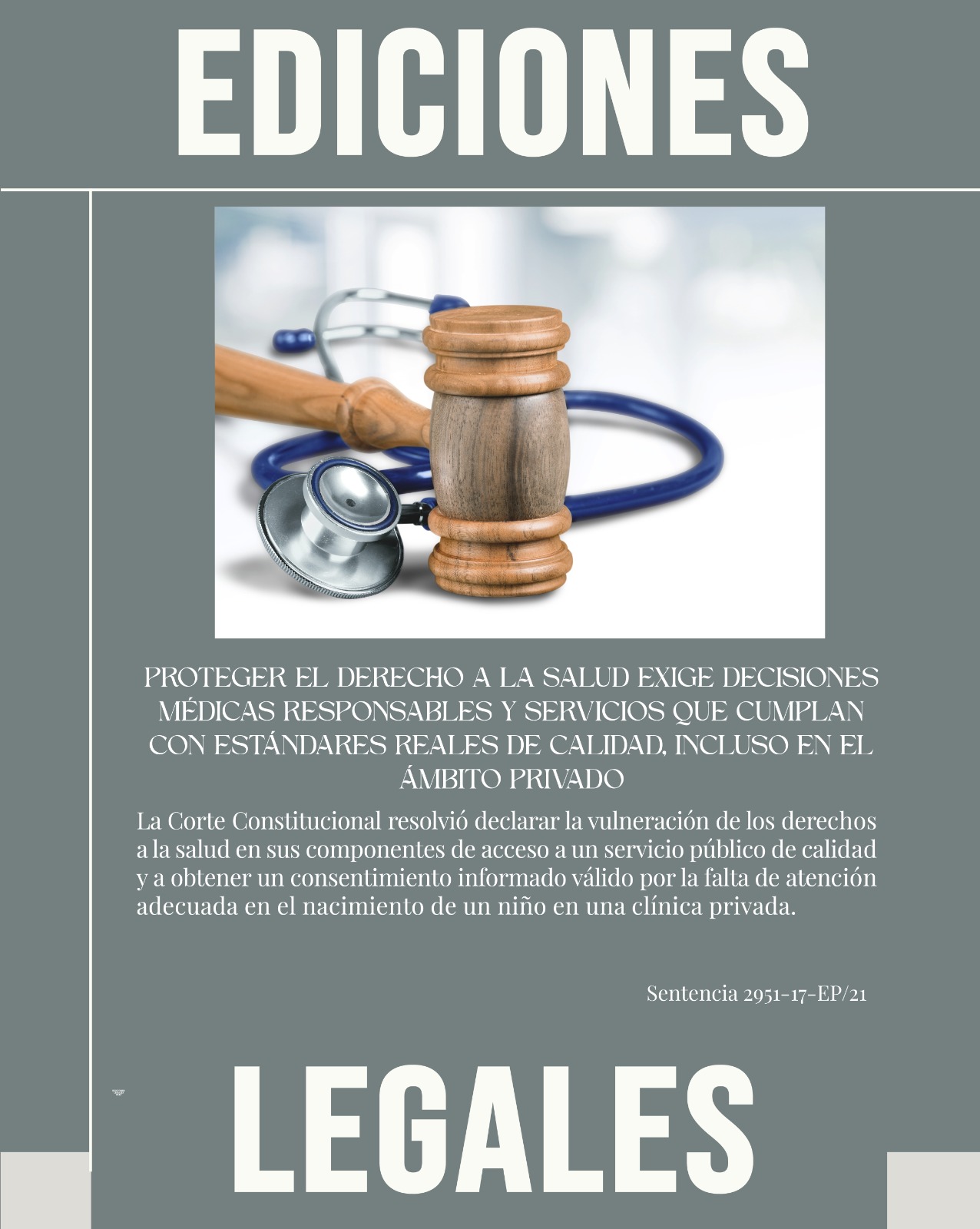 PROTEGER EL DERECHO A LA SALUD EXIGE DECISIONES MÉDICAS RESPONSABLES Y SERVICIOS QUE CUMPLAN CON ESTÁNDARES REALES DE CALIDAD, INCLUSO EN EL ÁMBITO PRIVADO.